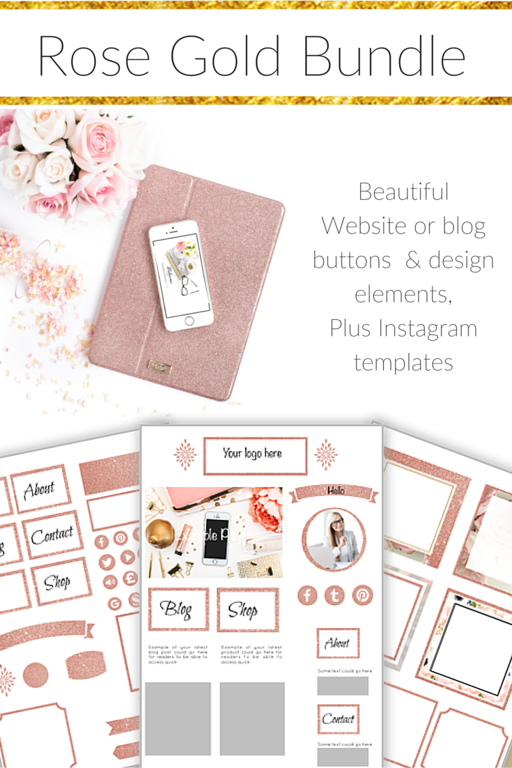 This is a beautiful collection of rose gold design elements to help you create a beautiful and professional looking blog or website. Create a gorgeous brand for your blog or business. This kit contains various design elements received in individual PNG files with transparent backgrounds. Use these images on any platform that allows you to upload your own files. You will also receive 7 instagram sized templates (jpg with white background) to allow you to create your own picture quotes or product images.