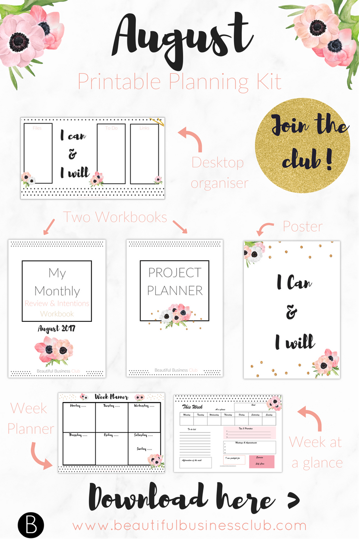 I believe with a little bit of planning and the right way of thinking we can all make amazing changes in our life and business. The members Club is designed to help you become more organised, productive and successful. Join the Beautiful Business Members Club now and receive monthly bundles of printable products to help you develop and grow a business you love. With a different mixture of printable workbooks, planners, branding elements, motivation tools, wallpapers and so much more each month is designed to help you focus and become more successful in your business. Become a member now and see what you can achieve each month with a little guidance and a helping hand.